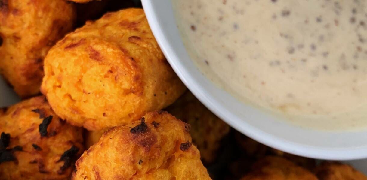 Air-Fried Sweet Potato Tots with Tangy Mustard Sauce